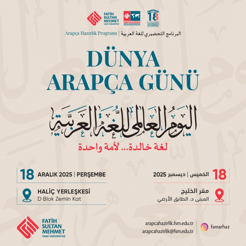 Arapça Hazırlık Programı olarak her yıl geleneksel şekilde düzenlediğimiz Dünya Arapça Günü etkinliklerine sizleri davet etmekten büyük mutluluk duyuyoruz.